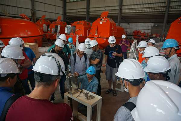 24 ships service elite personnel from all over the world come to Jiangsu Jiaoyan Marine Equipment co., LTD, for the factory equipment of the new design and new product to carry on the deep study and training services, Become a excellent service of Jiaoyan's survival equipment, Supply better quality, more professional, more timely service to Jiaoyan's customers.